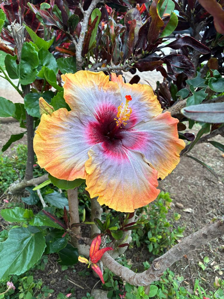 お散歩中に変わったデザインのハイビスカスを見つけました。