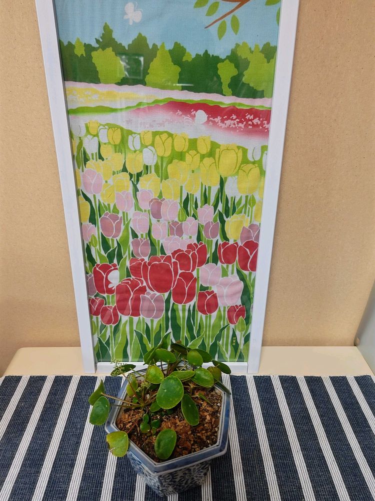 お雛様🎎を片付けて、絵手拭いはチューリップ🌷🌷🌷に。お部屋に一足早く春が来ました。