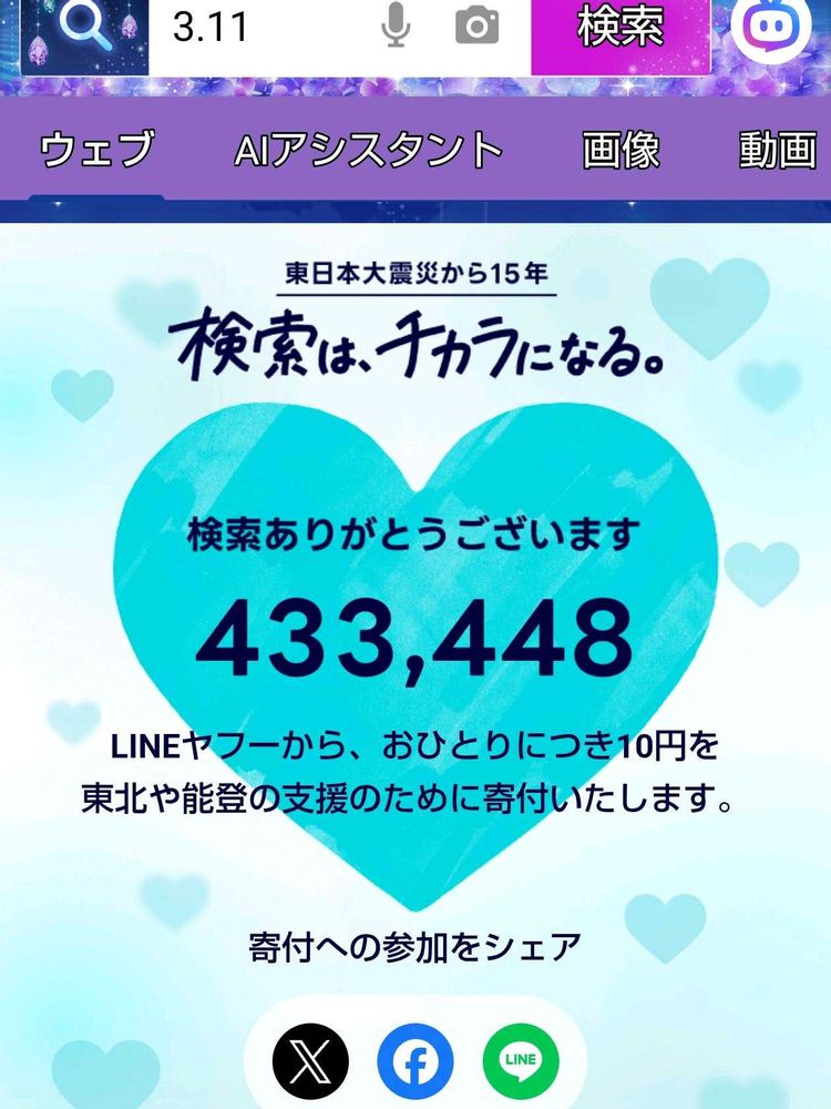 検索🔍️、「3.11」でひとり10円が東北や能登の支援に