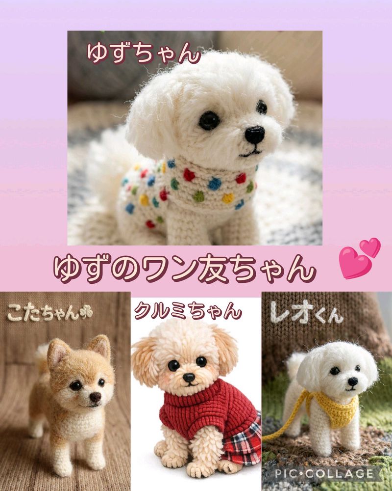 ゆずちゃんのワン友ちゃんをお許しもらって毛糸アートコラボしちゃいましたぁ〜🤗💕