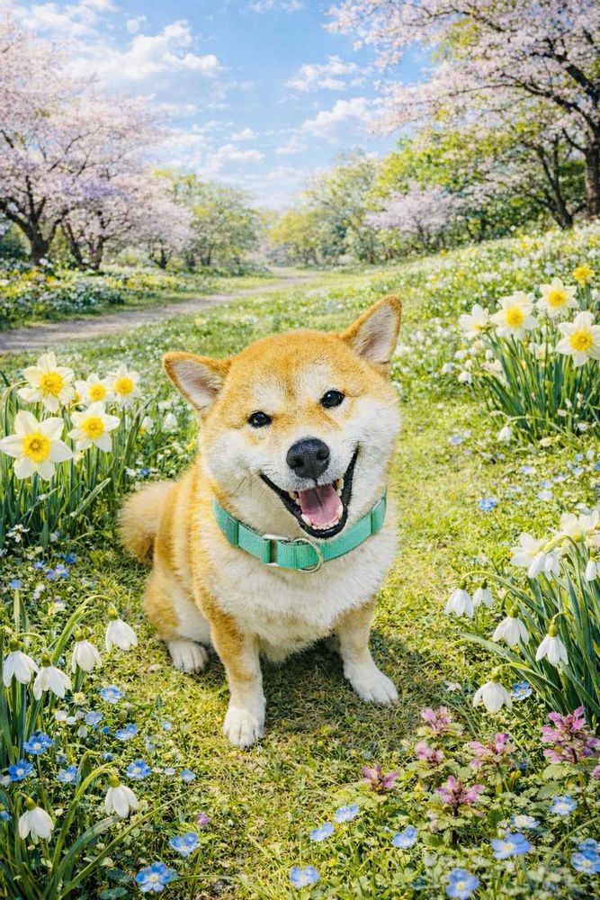 うちの柴イッヌの写真をもとにチャッピーにお手伝いしてもらって春の風景に🌸