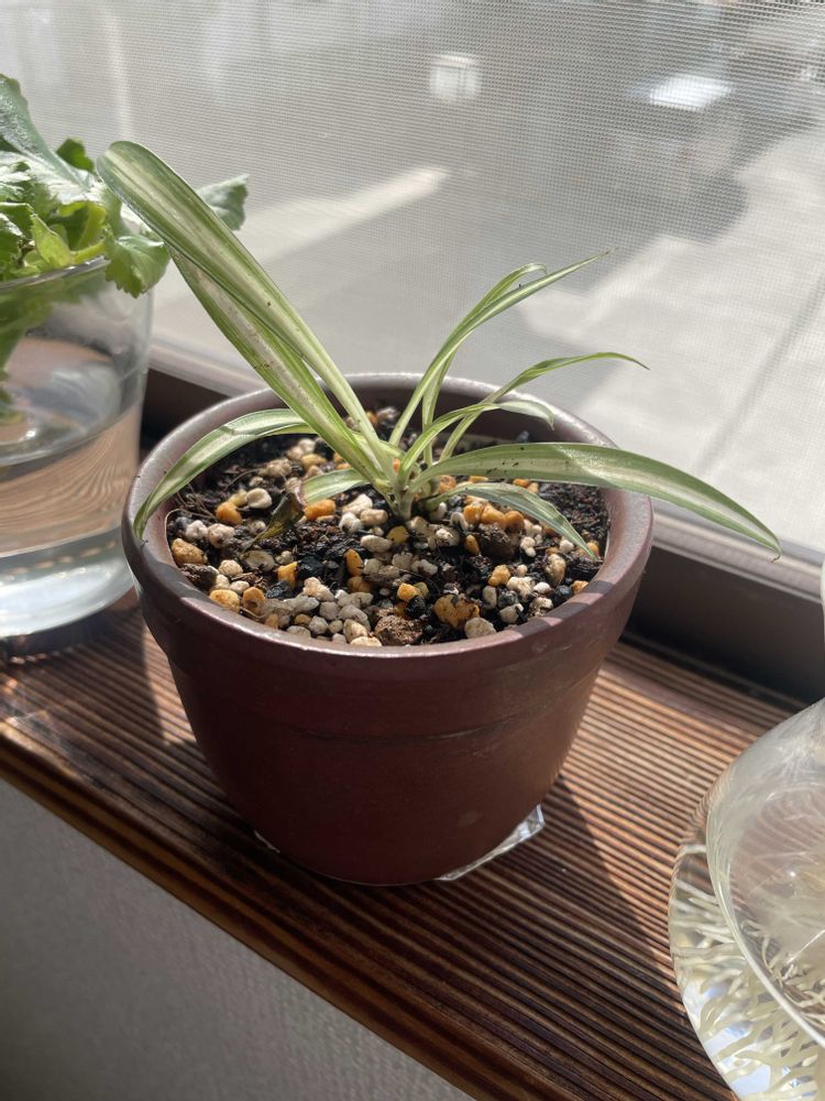 先日、前から購入しようと思っていたオリヅルランが祖父のお庭に植っていたので一株頂戴しました🤲🏻