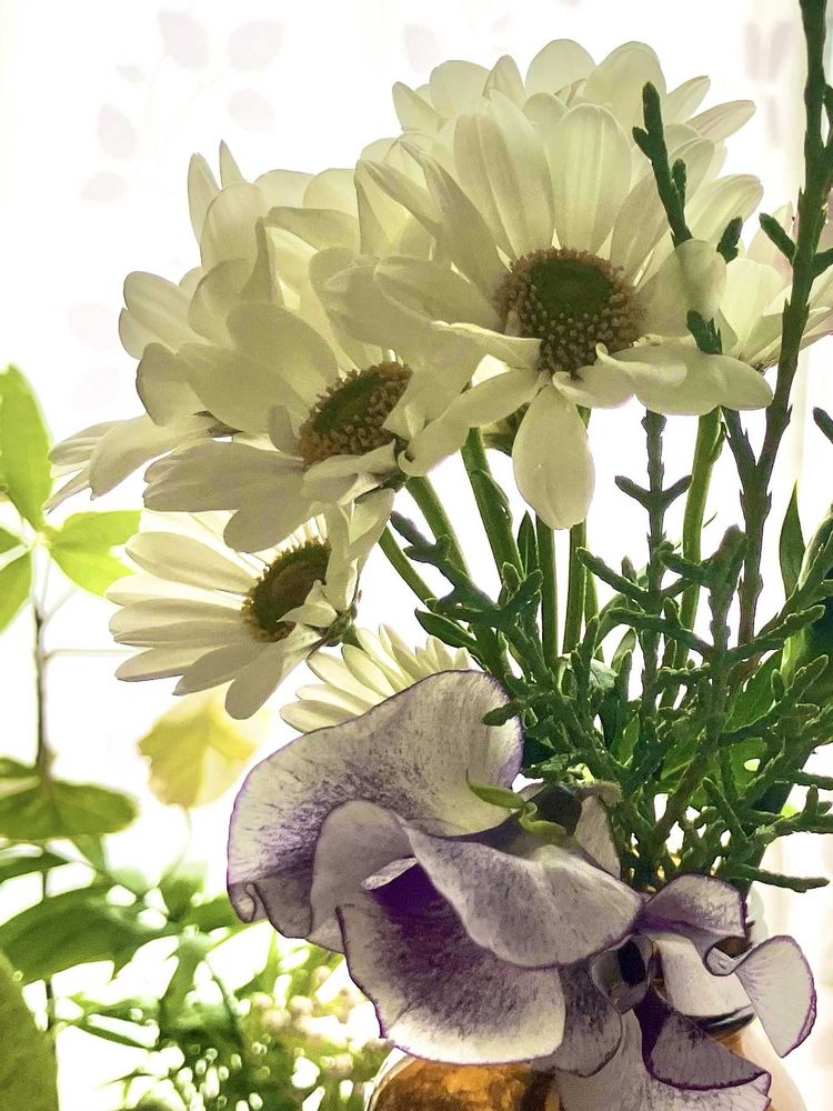 *さんのスイートピー,コニファー,スプレーマムの投稿画像