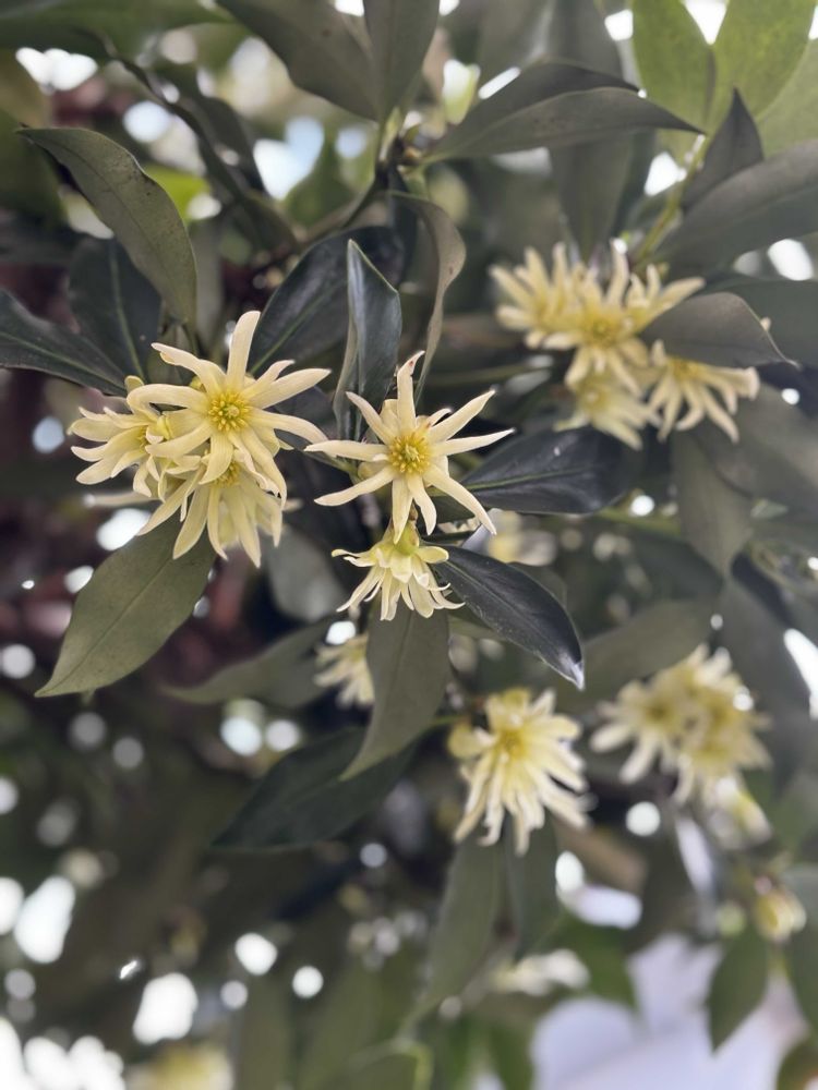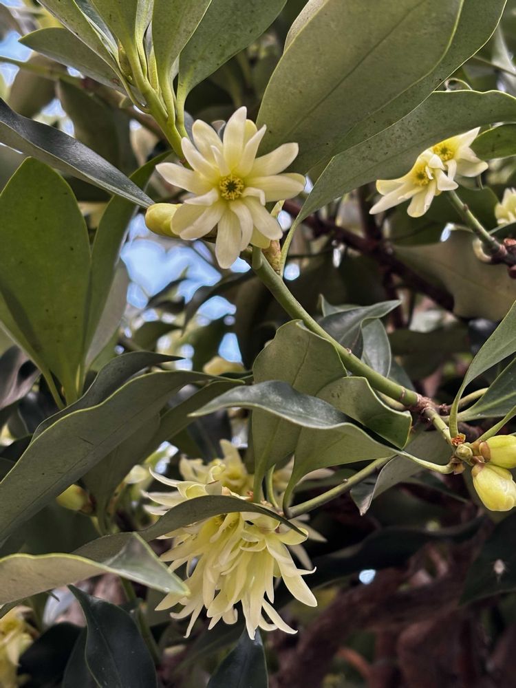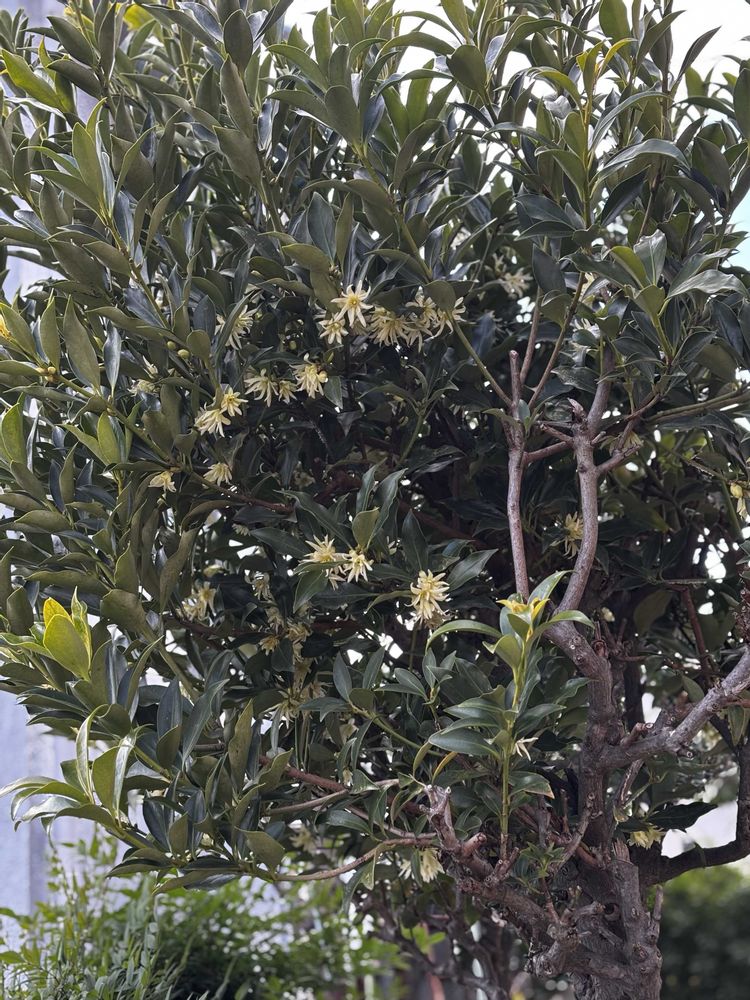 ①②③あれっ、庭でシキミの花が咲きはじめています☺️🌸