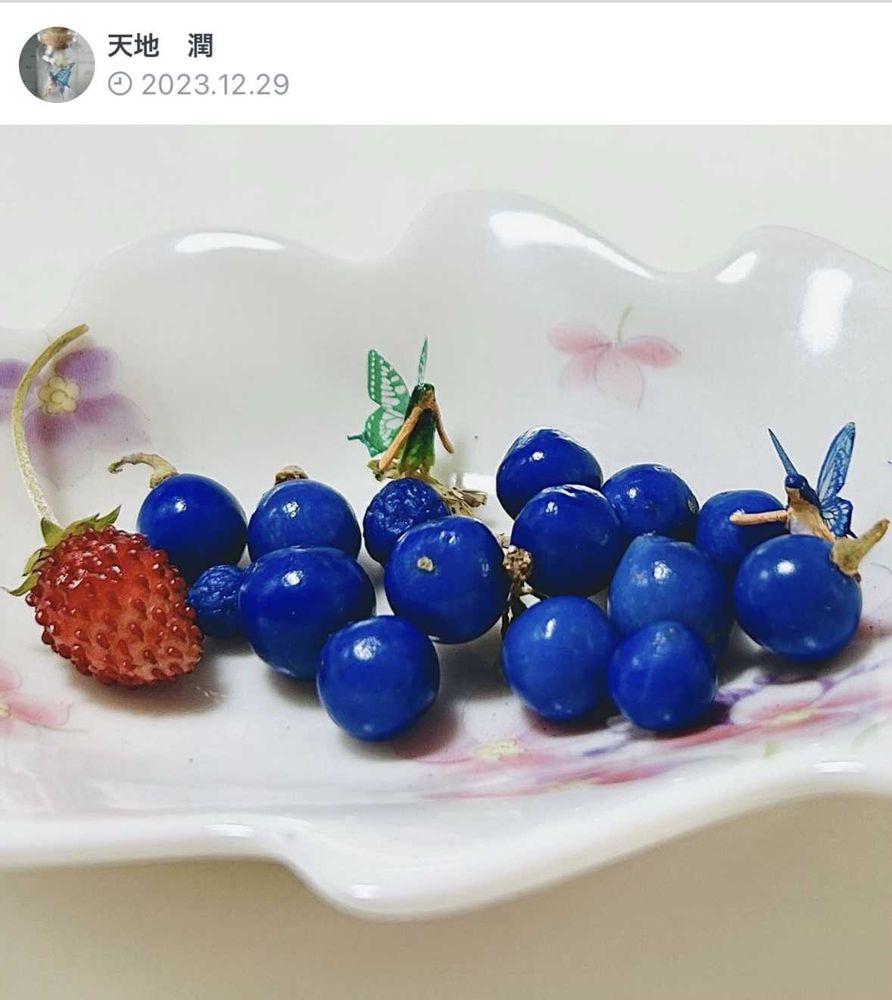 これも過去画像ですが…赤いナンテン、センリョウ、マンリョウも我が家の小さな庭にはありまして…この青い実は、確かリュウノヒゲとかいう名前でしたかしらん?凄く偽物っぽい青い綺麗さで、植物の神秘を感じます🥰