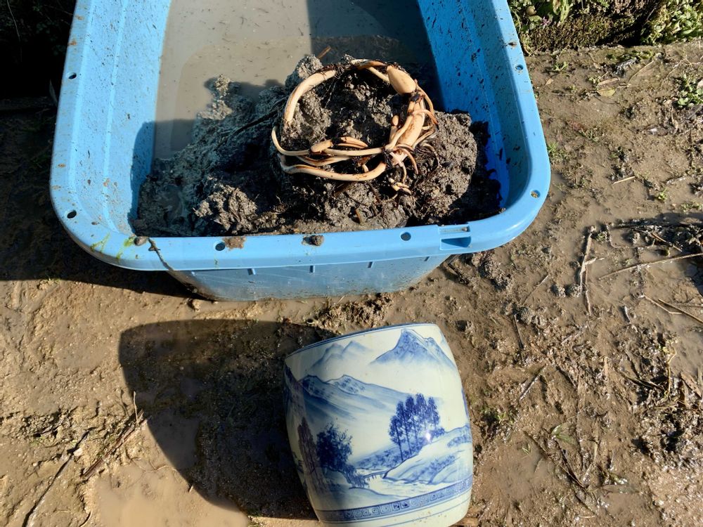 またハスの植え替えです😅小さな火鉢で栽培した茶碗蓮🪷小舞妃😀思ったより太ってるレンコンがありました😀食用にも適してると言う誠ハスをポチりました😅30Lのストロングタブに植え込みました😀ハスの植え替え完了しました😀今日は3.11震災の日ですが、カールくん🐕と出会えたので複雑な気持ちです😢震災2年後だったかな❓飯館村に里帰りしたときのカールくん🐕が居たときの犬小屋😀