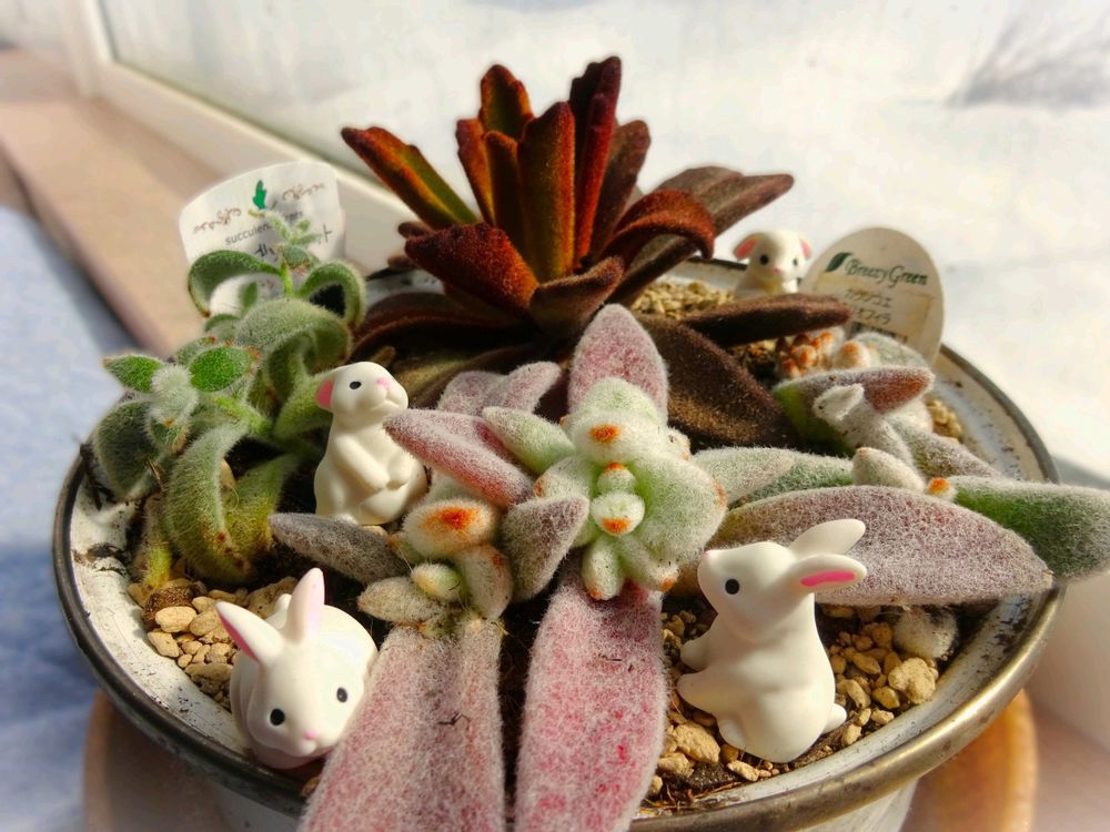 ①見切り品出身のウサ耳たちを寄せ植え🐰💕