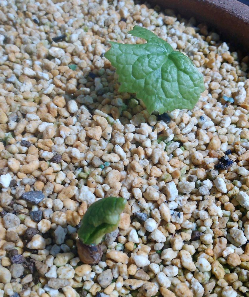 今日明けで帰って水やりしてる時サンカヨウまた1つ芽が出始めてました🥳