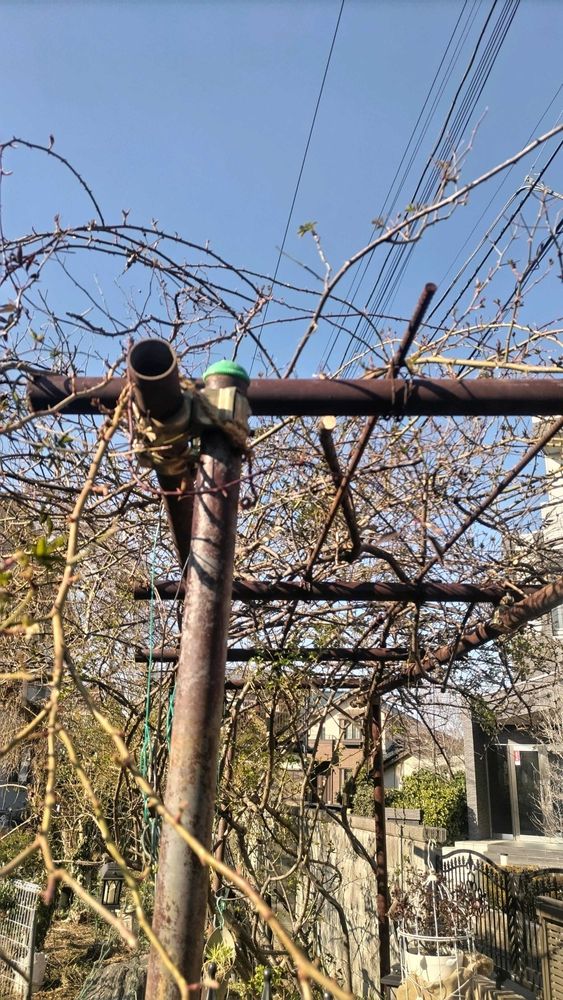 バラやクレマチスの剪定をして