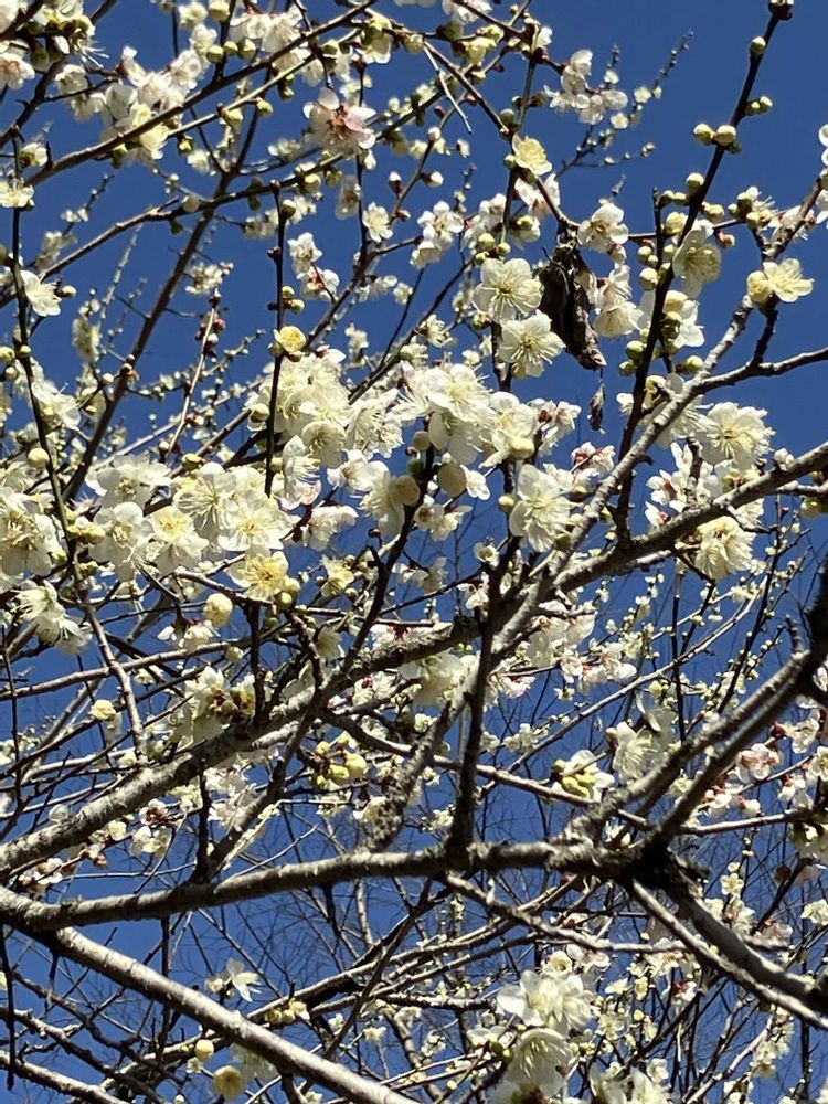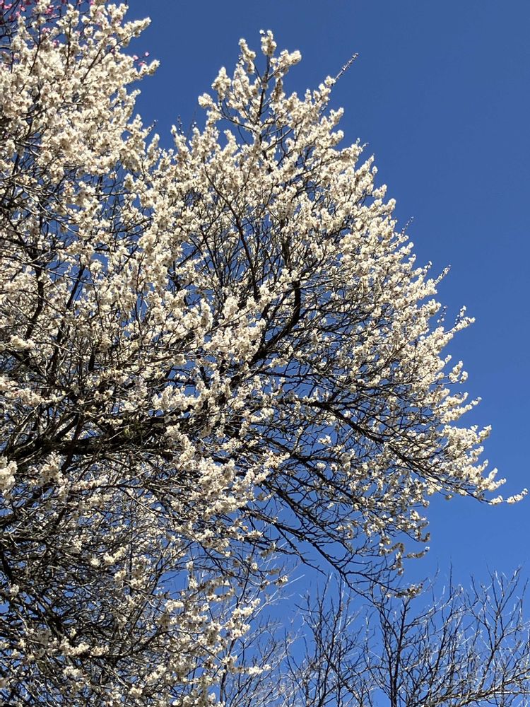 ハナモモというとピンクのイメージですが、白いお花は、より青空に映えますね☺️