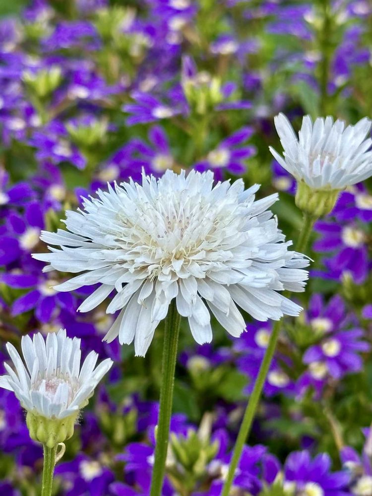 ❸白花タンポポ(昨年6月) 後ろの紫はスケボラのお花💜