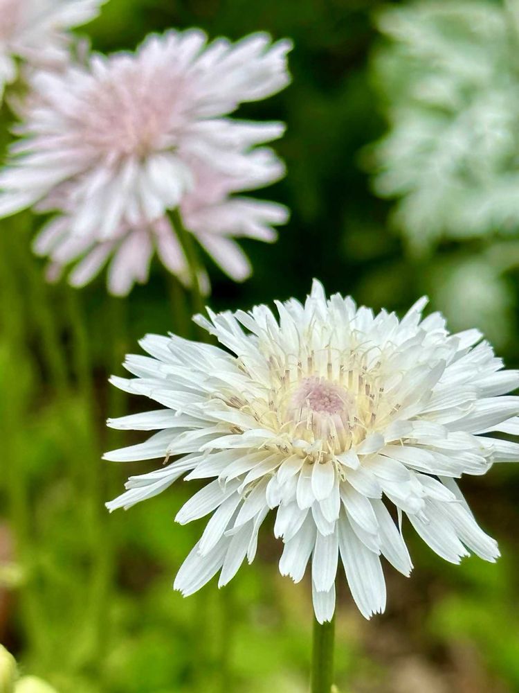 こちらでは見かけない【桃色タンポポ】と【白花タンポポ】昨年種を取り寄せして4月に種まきしやっと6月に開花🌸✿˳༚༅༚