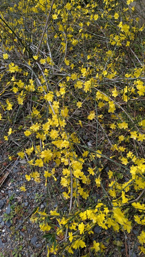 5枚目は地面を這うように広がっているオウバイ(黄梅)です。