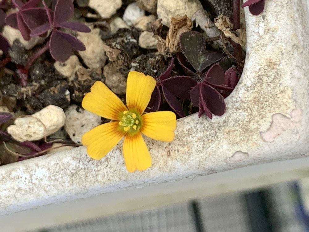『アカカタバミ』『オオバタネツケバナ』が植木鉢の隅で可愛く咲いてます!!