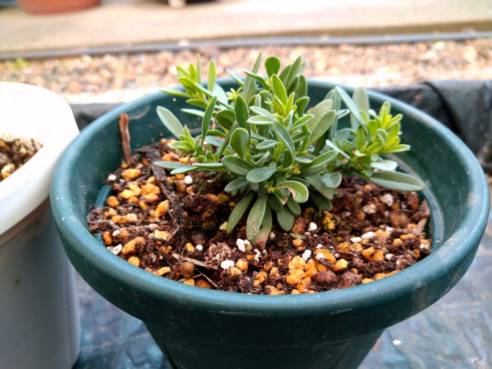 4️⃣主に7号プラ鉢に植え替え❗ 既に花芽もありますが、今はガマン!摘んで中心部の枝増産に努めます!