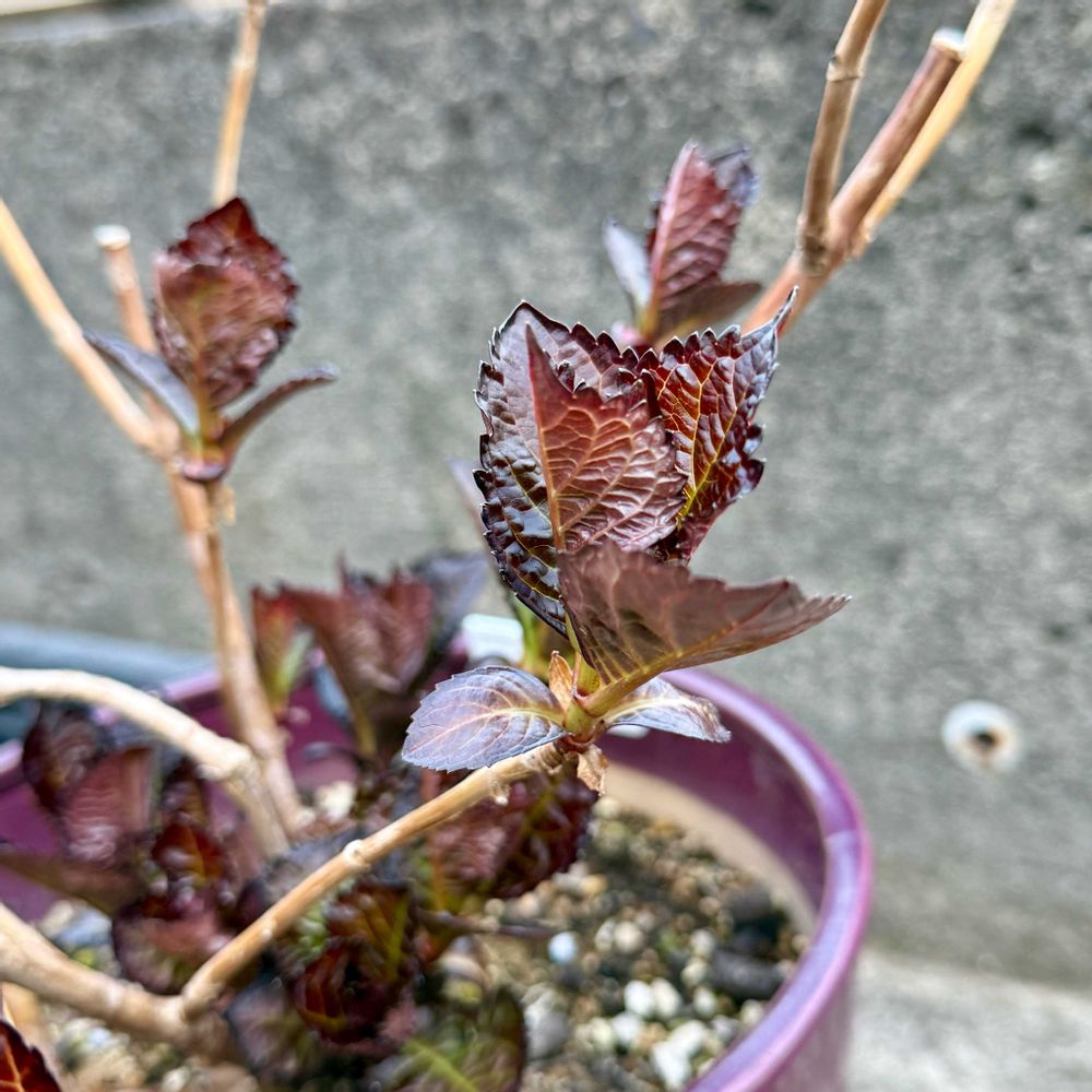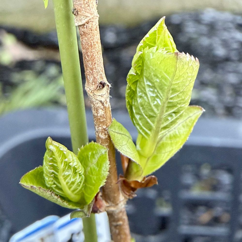 紫陽花の芽吹き、春を感じますね。先日、園芸コーナーに開花した紫陽花が並んでいてびっくり😳😍でした。