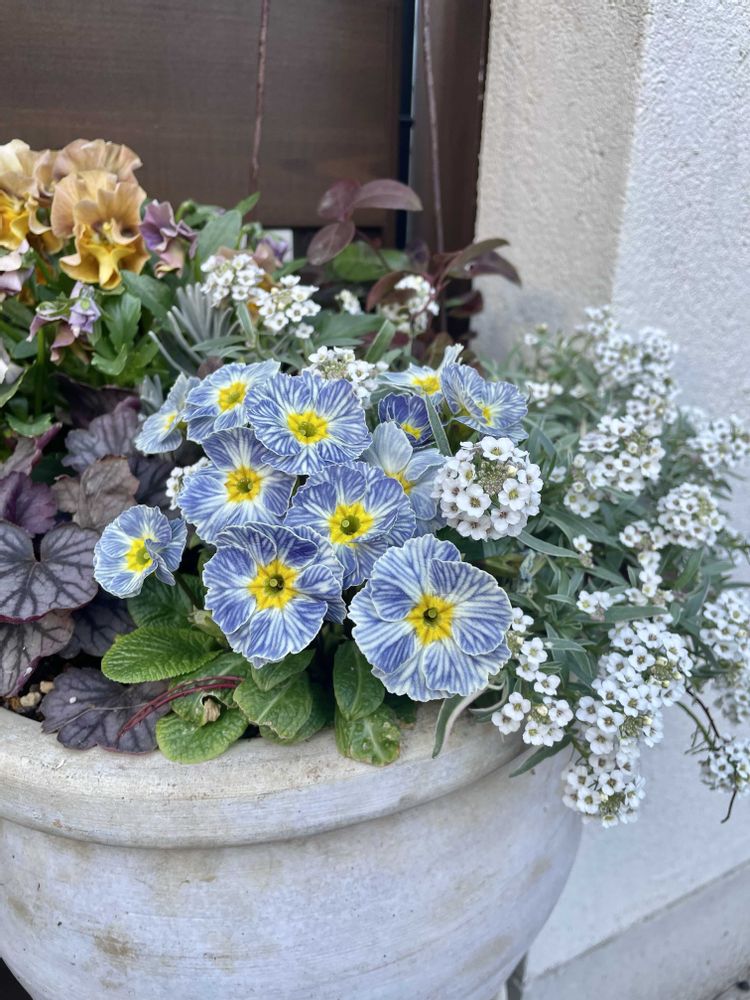 ①②寄せ植えのプリムラ可愛い🩵