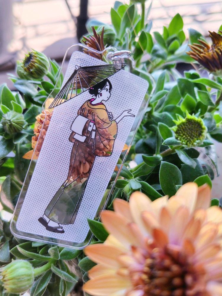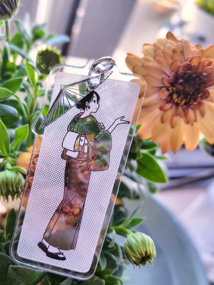 マムの中心の色と模様が素敵なお着物の柄になって🧡葉のグリーンも入って💚爽やかに〜🌿
