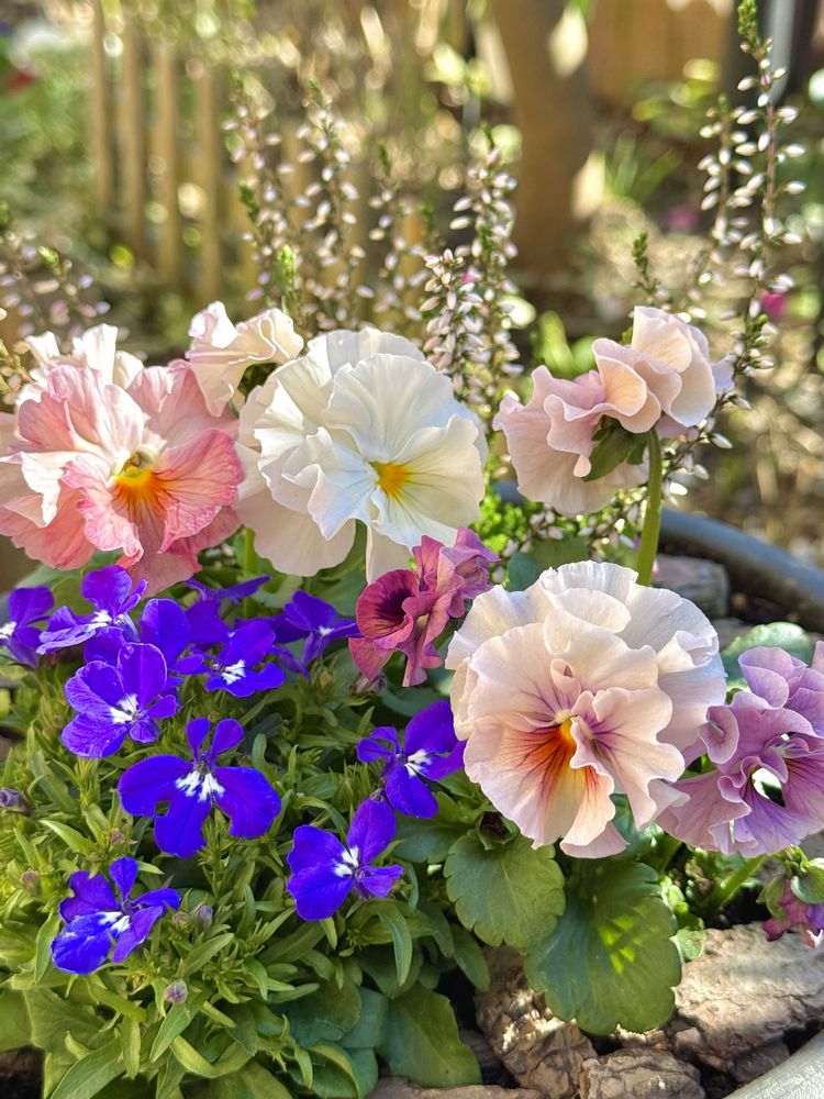 マミンさんのロベリア,ビオラ,梅の花の投稿画像
