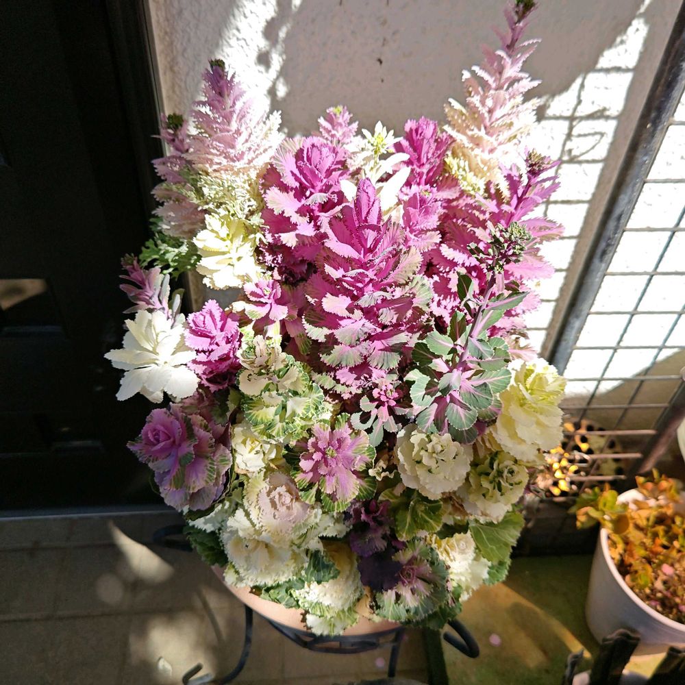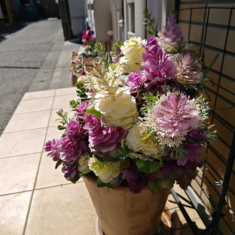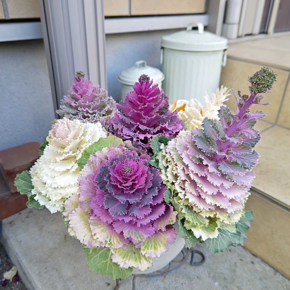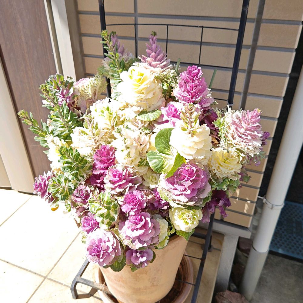 この葉牡丹だけで1鉢埋めたら、トウ立ち時にはラブリーな葉牡丹タワーになるだろうなー。来季やってみようかな😚