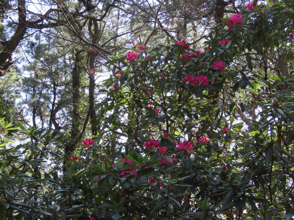 大木のシャクナゲが咲き始め