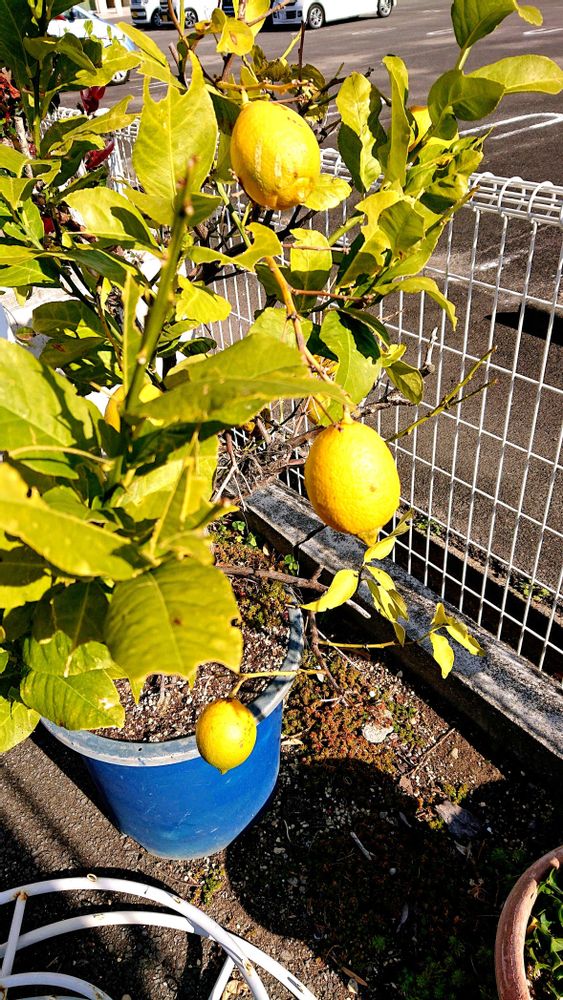我が家の!と言いたいところですが、我が家の 畑のレモンのpicがなかったので、たまに行くクレープ屋さんの玄関にあるレモンで参加させてください😉🎶