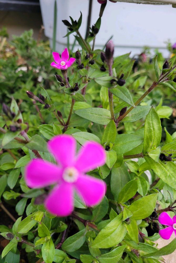こぼれ種からのシレネ咲きだしました🌸小さな蕾たちが可愛い💕💕あっちこっちから🌱