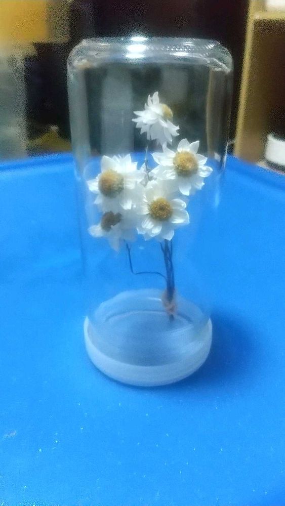 ビン詰めのドライフラワーは、お部屋の中で楽しんでいます