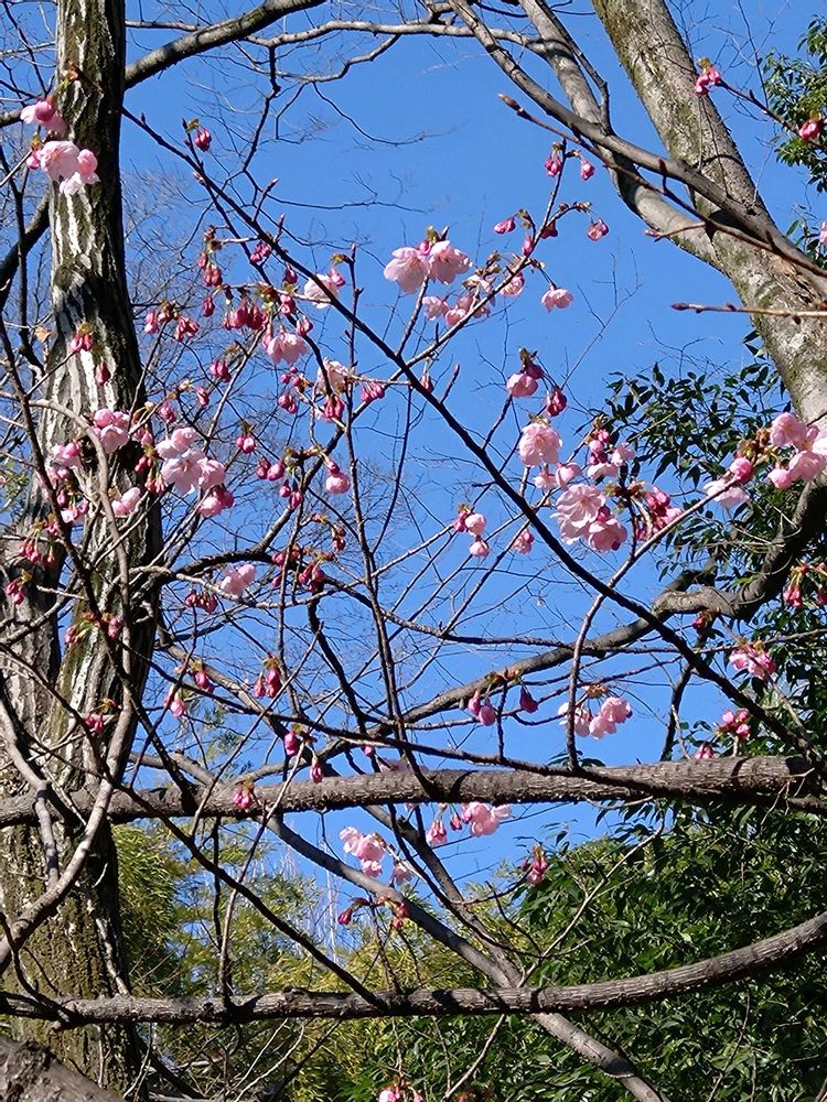 ❹せきれいの道でいち早く咲くオカメザクラ🌸