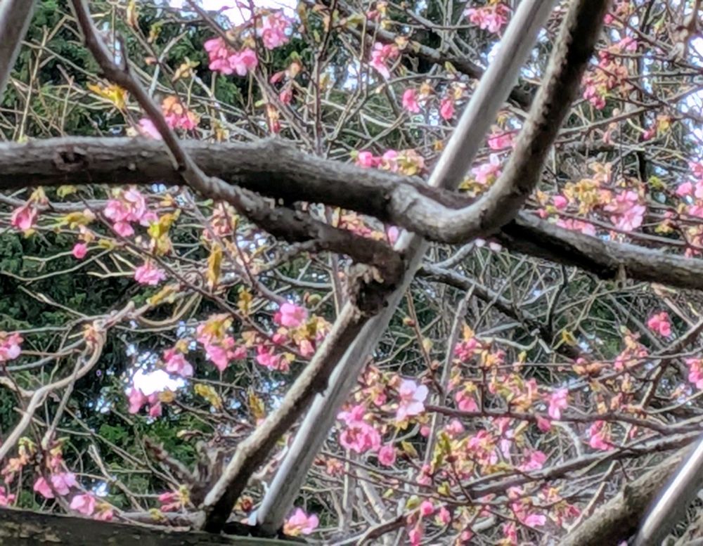 藤棚越しの河津桜…