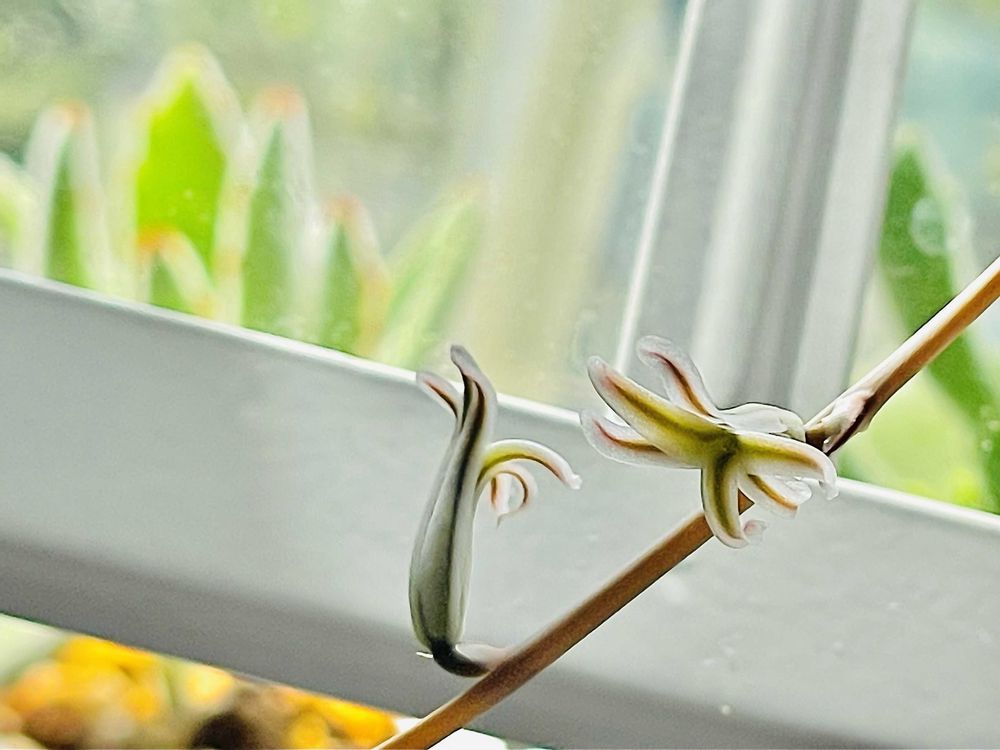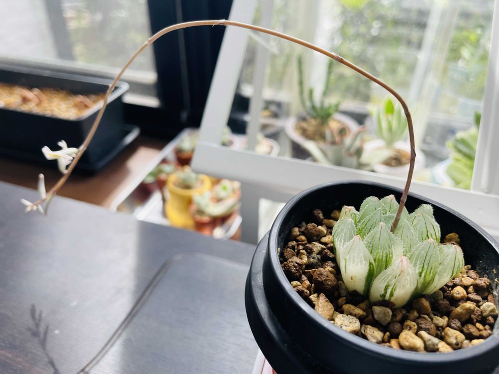 ハオルチア ベヌスタ×ブラックオブツーサの全斑のお花が咲きましたよ。