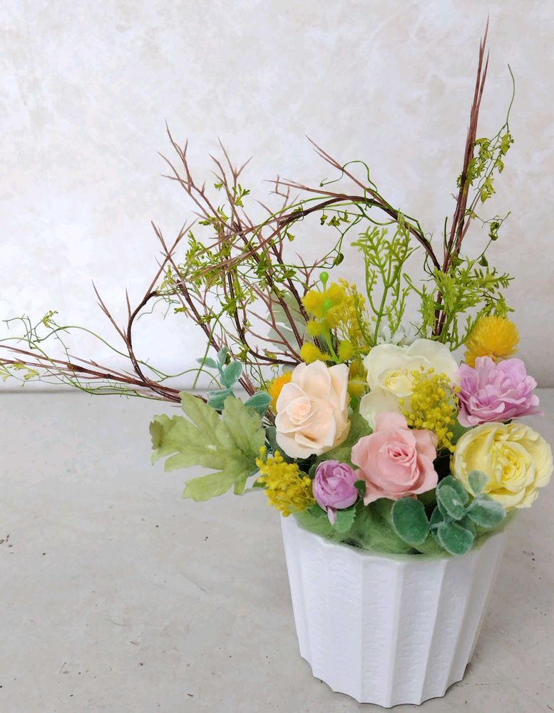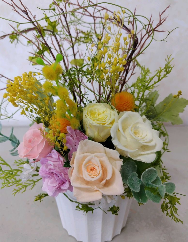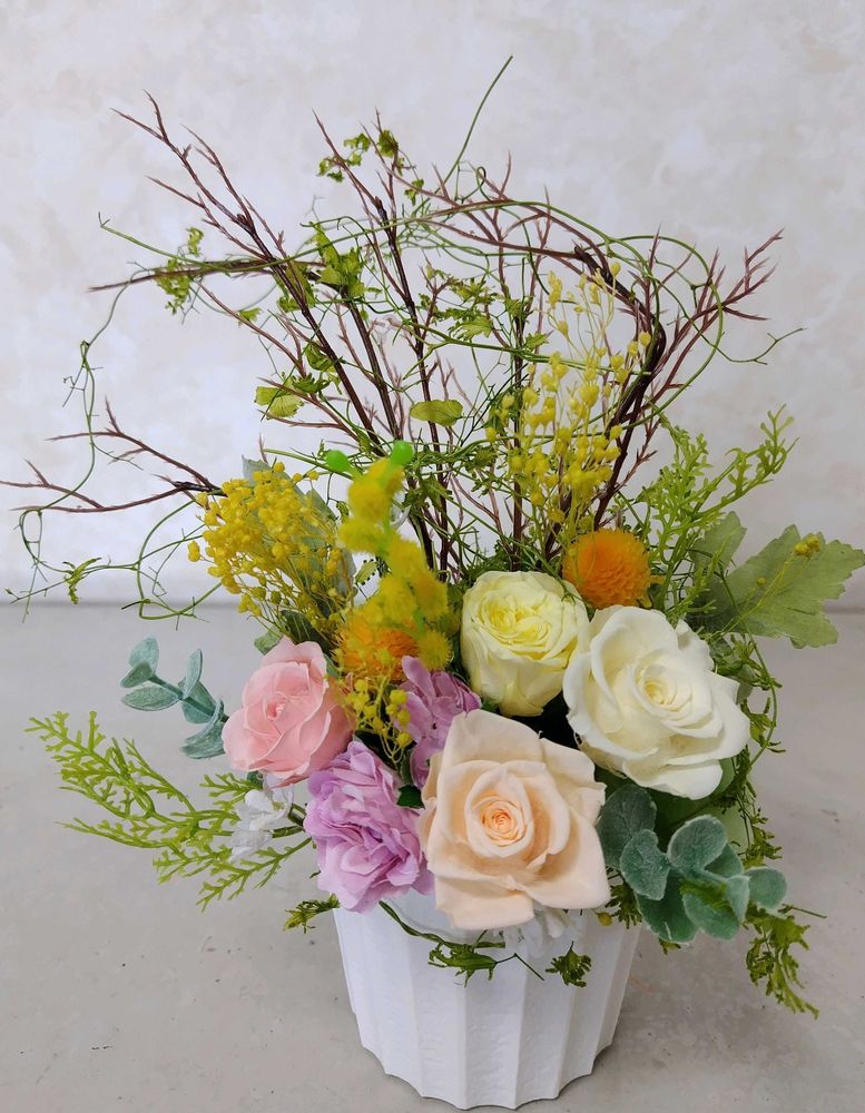 ②③春らしくて優しい色合いのプリザーブドフラワーと造花を使ったアレンジメントです❇️💮🌸🌼✨❇️