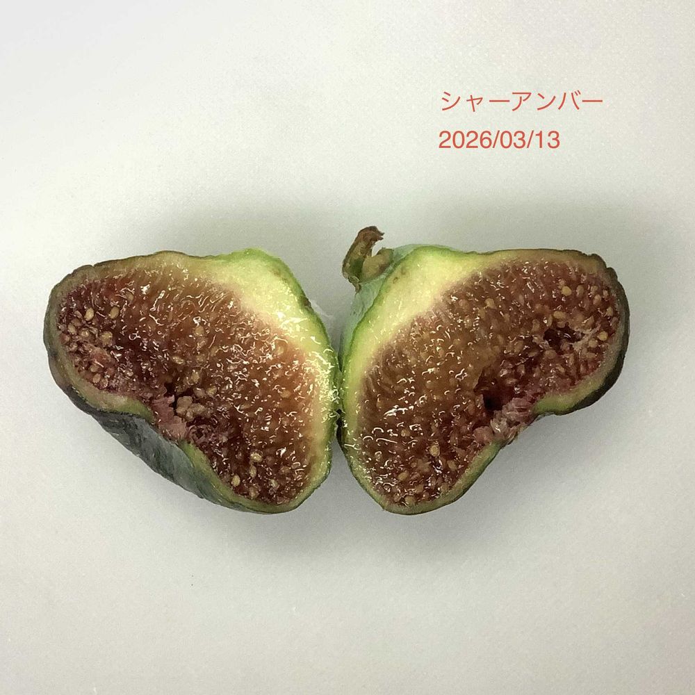 このイチジクの果肉の色や食感が「シャーアンバー」の特徴によく似ており、このイチジクは「シャーアンバー」で間違いないようです