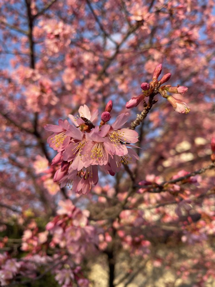 染井吉野🌸よりも色が濃く、河津桜🌸よりも色が薄い。