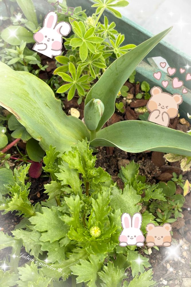 またその間から突然昨年の球根が残っていたのか 葉っぱがニョキニョキ出て来たと思ったら 蕾もみっけ😍💓
