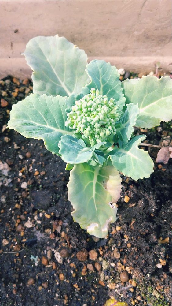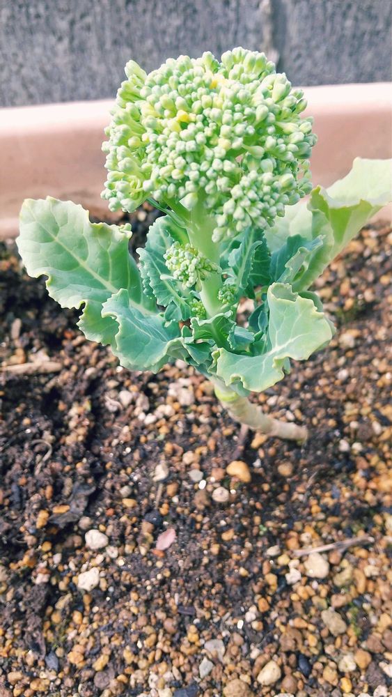 かわいいサイズのブロッコリーができました。まだ小さいけど黄色くなってきてしまったのもあるので少し収穫してみました。