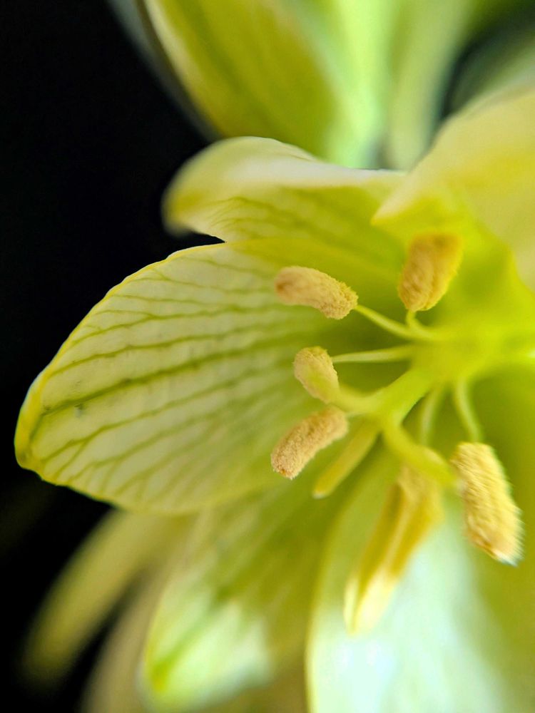 なんとマンション下の、根もとから折られたアミガサユリの頭が持ち上がってて、花が咲いてたんです😮