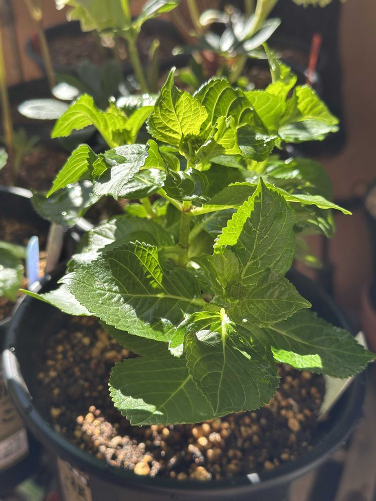 ヤマアジサイはまだ芽が小さい(そして枝の先にあった4つの芽のうち2つが取れてました🥲)のに、こちらはだいぶ葉も展開していて健康そうな苗でしたね🌱