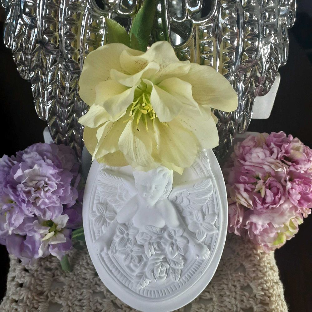 今日はエンジェルデーでした👼✨💍✨100均の天使👼と庭のお花達でアレンジしてみました🎵