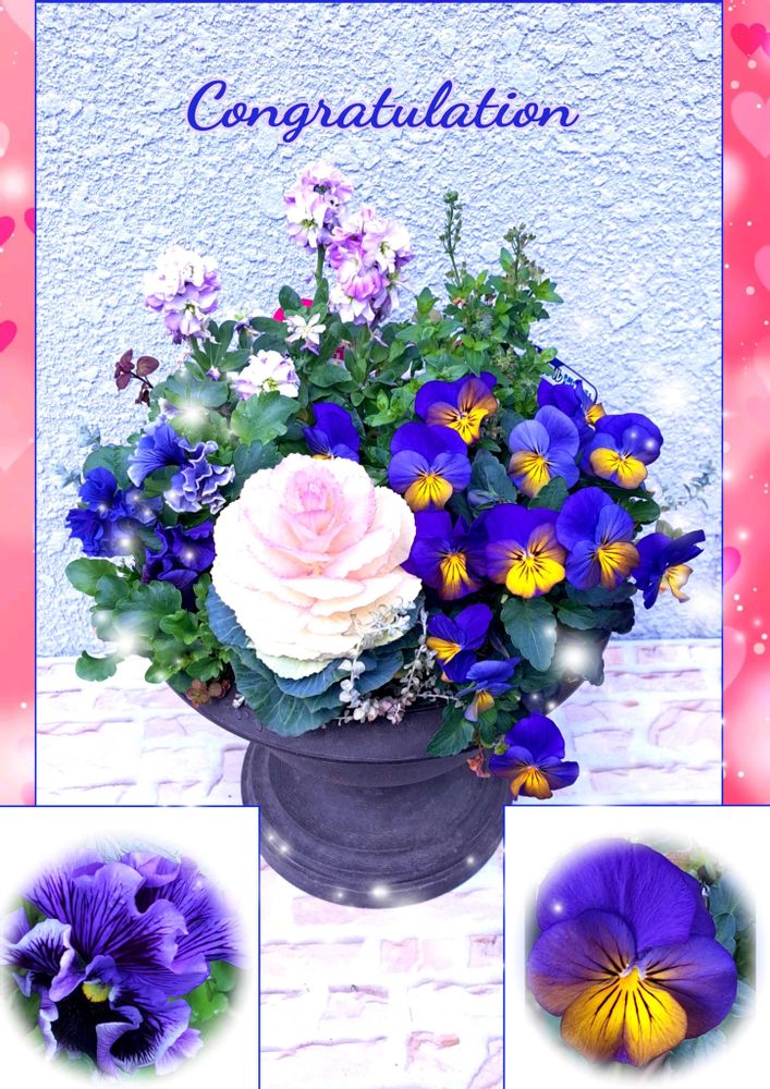 ①枚目…玄関先でモリモリになってきた寄せ植えで、お祝いさせて貰いますね~🥰✨️