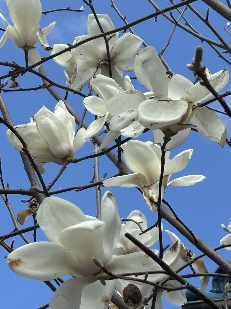 ハクモクレンの花びらは9枚で開花が早いせいか全開してる感じ🤔