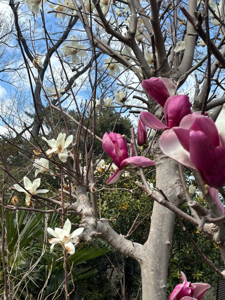 白木蓮に続いて紫木蓮も満開🤍💜