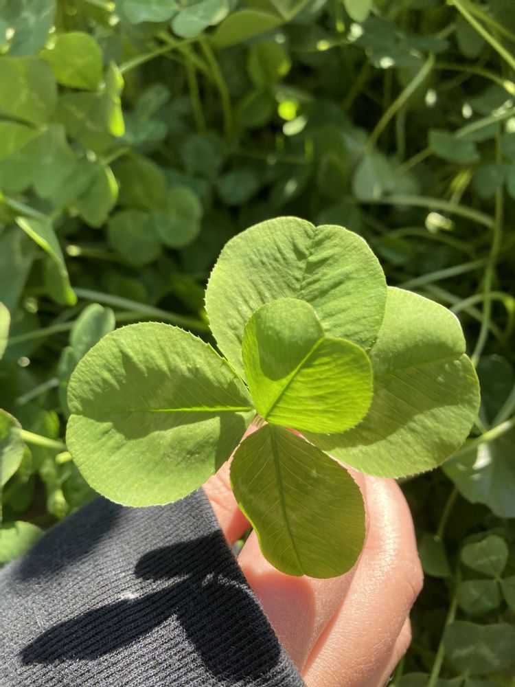 花壇で五つ葉のクローバーを発見‼️