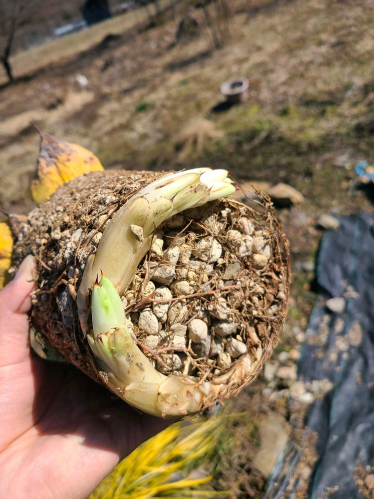 引き抜くと鉢底に大きな子株たちが