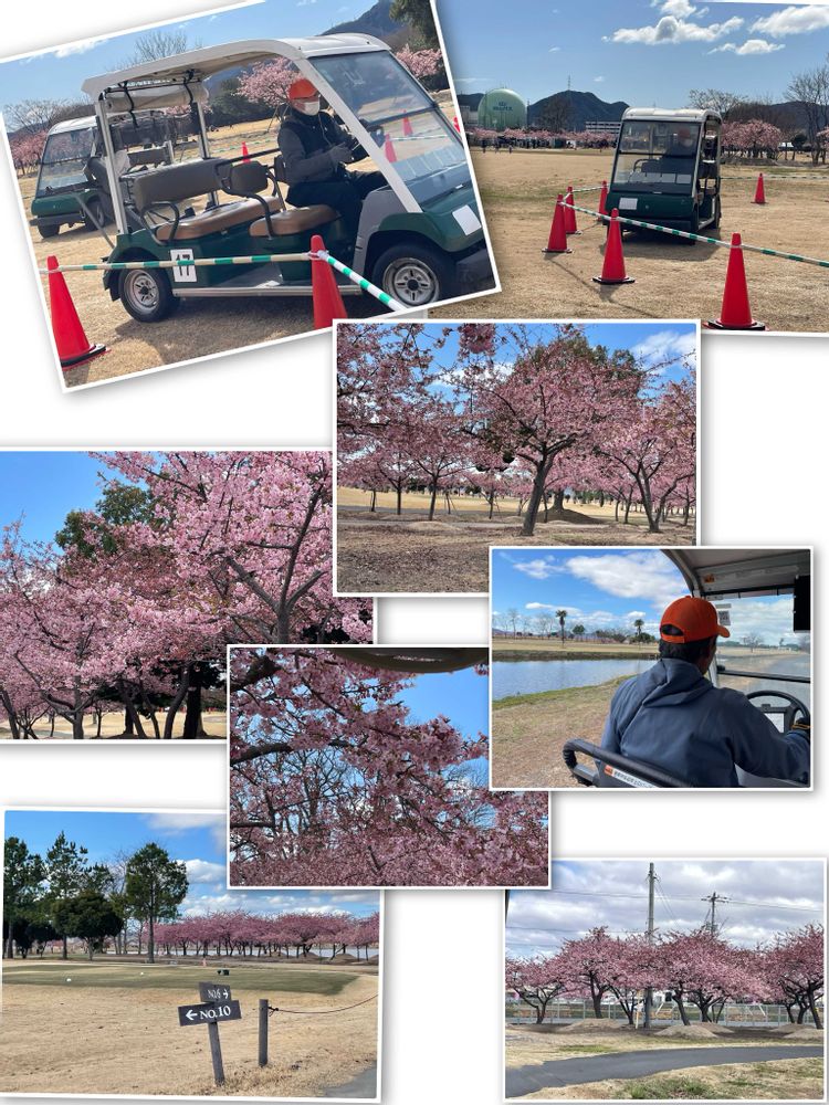 ゴルフ場⛳️のカートに乗って花見🌸なんて、めちゃいいなー👍
