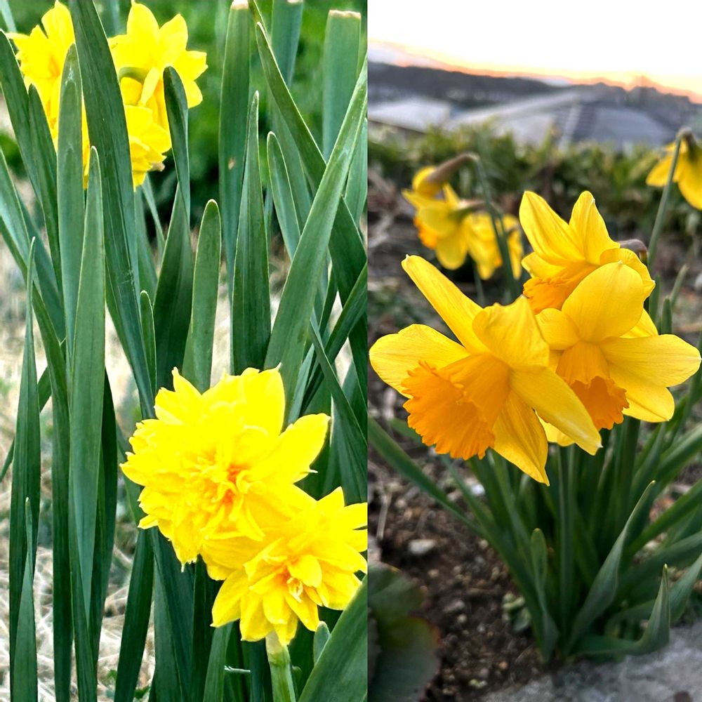 ③お散歩中の八重黄色い水仙と