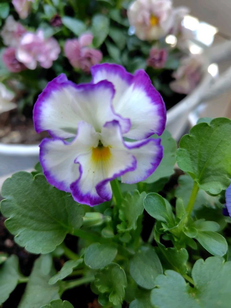 ④江原ビオラ…紫色のピコティが初めて咲きました💜🤍💜 種まきビオラこれから実力発揮となってくれますように🤗