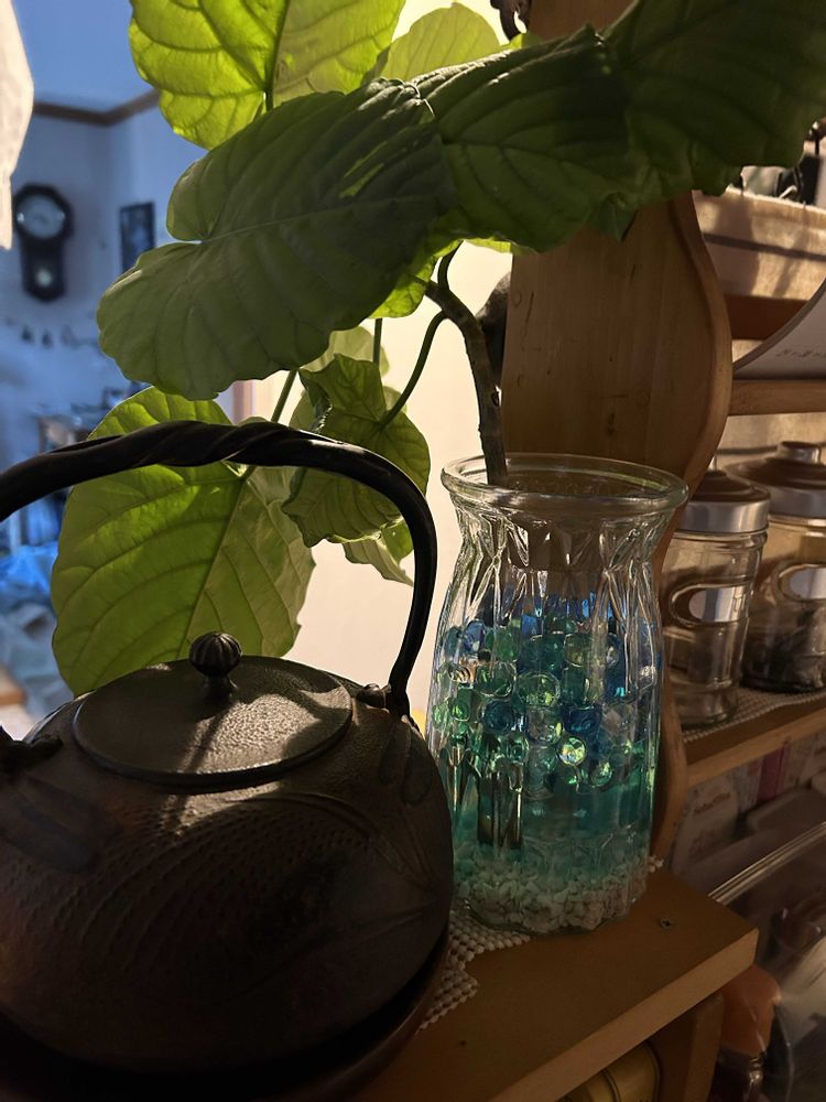 キッチン側からがガラスや葉っぱがが透けて美しいです🫙☘️