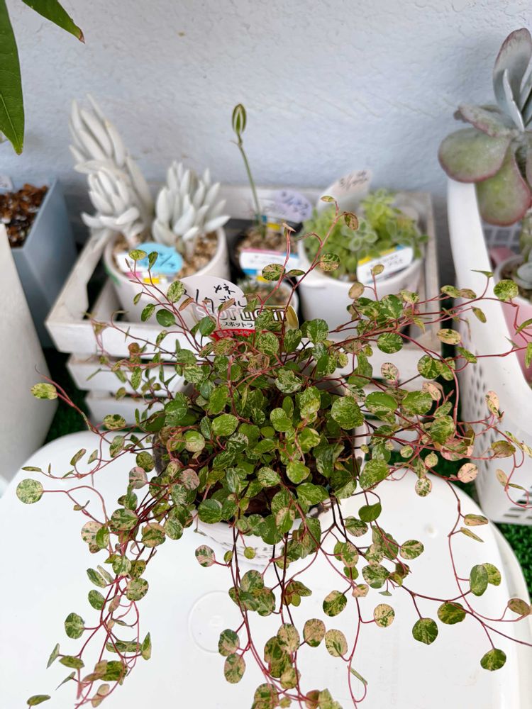 斑入りという名に引き寄せられ、ワイヤープランツのピンク色の斑入りをお迎えしてしまった♡