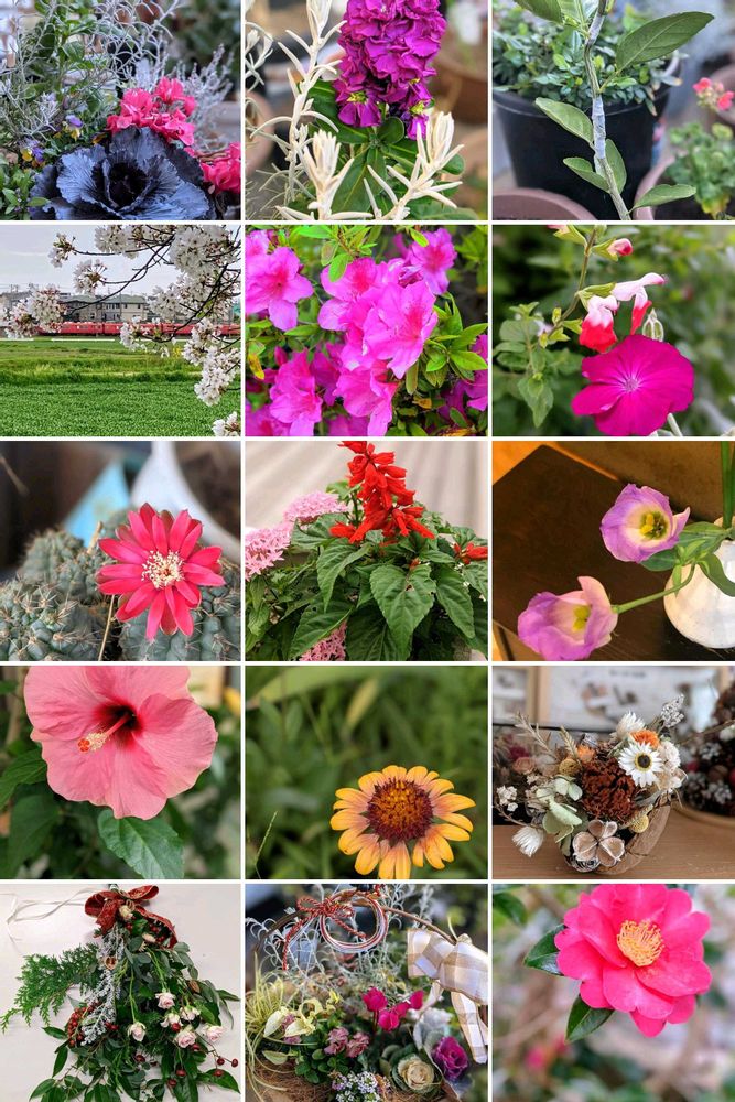 Googleフォトが「自然のブーケ💐2021年」と題してコラージュしてくれました🍀😊✨近所の桜並木🌸長崎に帰省🛩ボタニカルライフ講座~♬♬Good memory☆(*˘︶˘*).。.:*♡